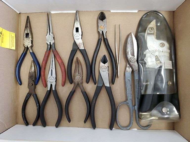 LOT 202 - Needle nose pliers, wire cutter, tin snips, draw cut anvil pruner.