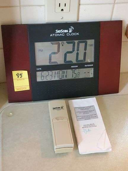 LOT 85 - SkyScan atomic clock with temperature transmitter and instruction manual. Kitchen