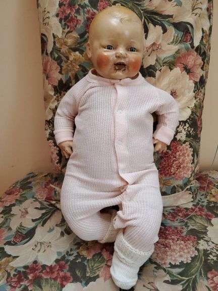 LOT 169 - Vintage E.I.H. Company composition 20-in doll with sleeper eyes (some cracking around the mouth). Upstairs bedroom two
