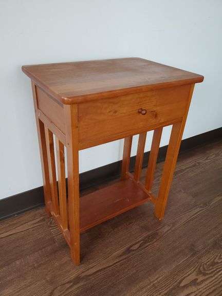 LOT 24 - Solid wood mission style accent table with drawer measures 18 in wx 13 in D 24 in H