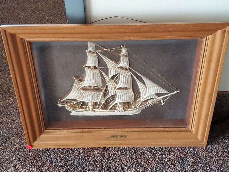 LOT 50 - Vintage Turner Wall Accessory titled "The Colonial Queen" Clipper Ship 3D Shadow Box. Measures 27 in W X 21 in H. Sign in room