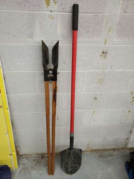 LOT 203 - Post hole digger by Tru Built, Spade shovel with fiberglass handle.