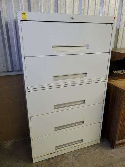 LOT 215 - Steel filing cabinet measures 37 in W x 17 in D 64 in H.