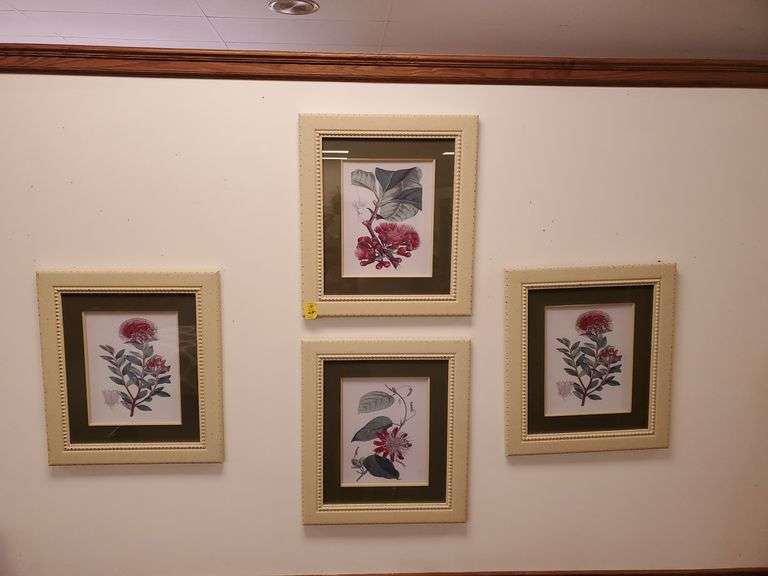 LOT 131 - Set of 4 botanical artworks in primitive style frames measure 24-in x 21 in.