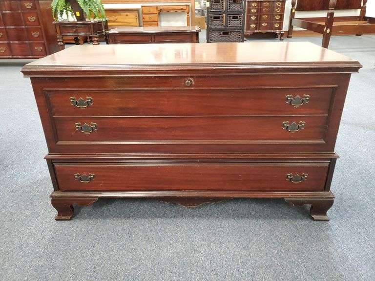 LOT 148 - Cavalier cedar chest with bottom storage drawer measures 45 in W X 19 in D X 26 in h. See photos