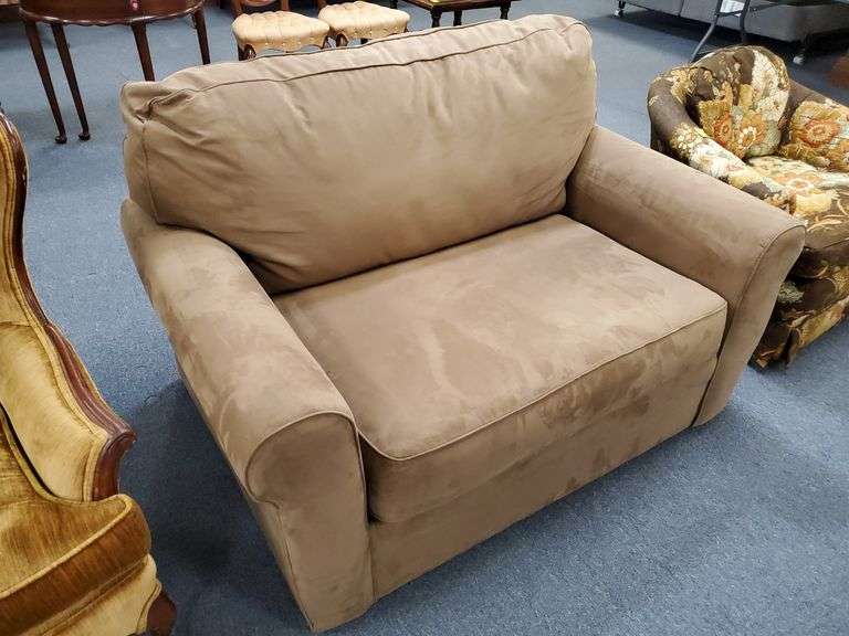 LOT 183 - Ashley Furniture 56" wide, light mocha microfiber upholstered loveseat with single bed sleeper. Clean