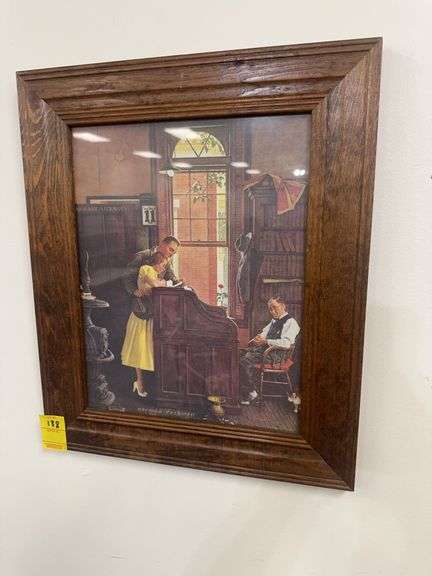 LOT 188 - 19” x 16” Norman Rockwell Print “Marriage License” in solid wood frame