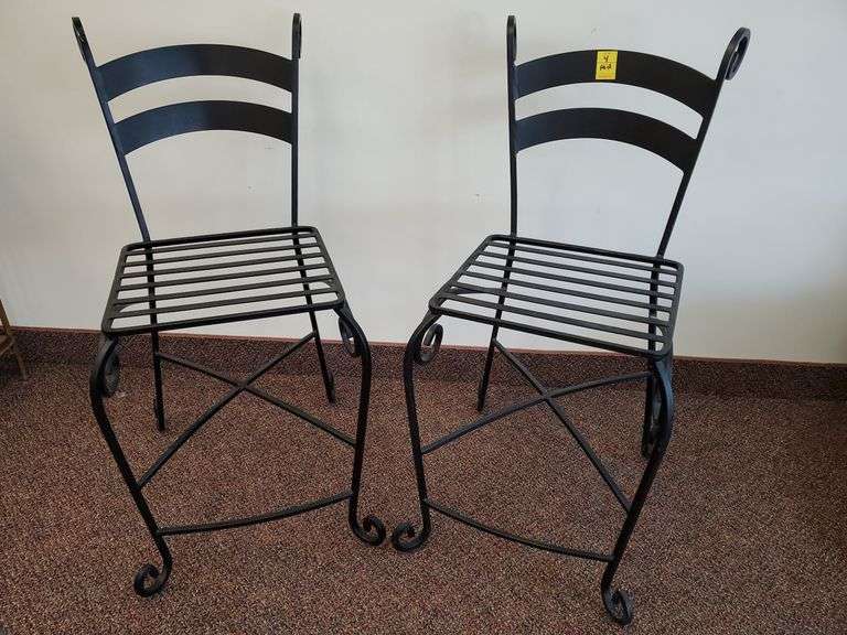 LOT 4 - Pair of bent metal wrought iron bar stools/chairs. Seat height measures 24 in high. Very well made.