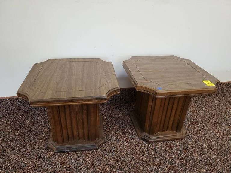 LOT 17 - Pair of small wood stands measure 18 in square and stand approximately 16 in tall.