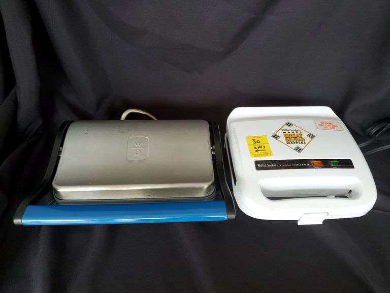 LOT 30 - Wolfgang Puck Panini maker model BGPP0020, Betty crocker Belgian waffle maker model BC-1957. Both work as they should.