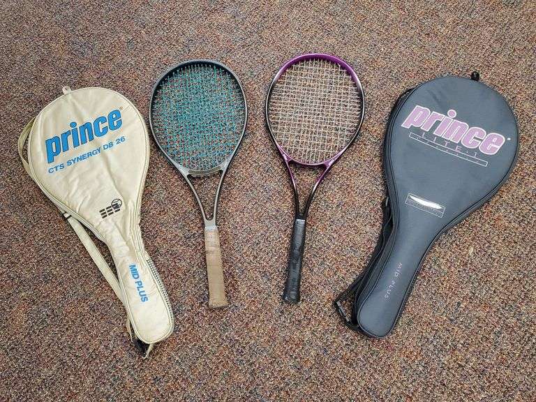 LOT 53 - Prince CTS synergy DB26 mid plus tennis racket with cover, Prince Lite I classic feather light mid plus tennis racket with cover.