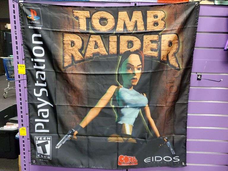 LOT 229 - PlayStation tomb raider promotional banner measures approximately 36 in square.
