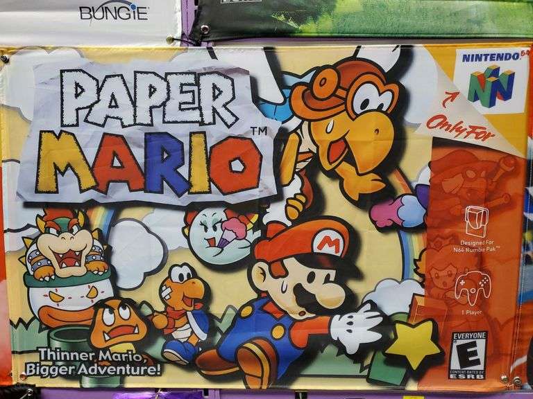 LOT 233 - Paper Mario for Nintendo 64 promotional banner measures 24 inch by 35 in.