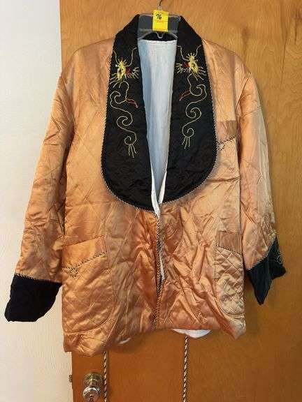 LOT 76 - Vintage silk smoking jacket, Asian themed