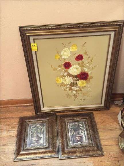 LOT 46 - Artist signed oil on canvas still life and two framed palm tree pictures from Kirkland’s