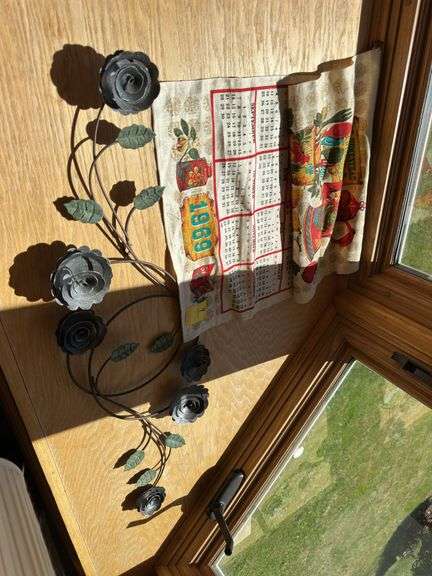 LOT 9 - Metal wall art and 1969 cloth calendar