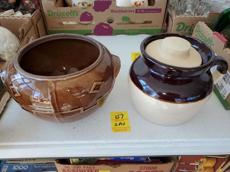 LOT 157 - (2) stoneglazed bean pots. One marked Roseville.