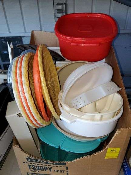 LOT 194 - Vintage paper plate holders, divided plastic containers and more.