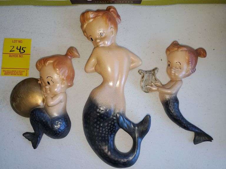 LOT 245 - 1950s chalkware wall hanging mermaids.