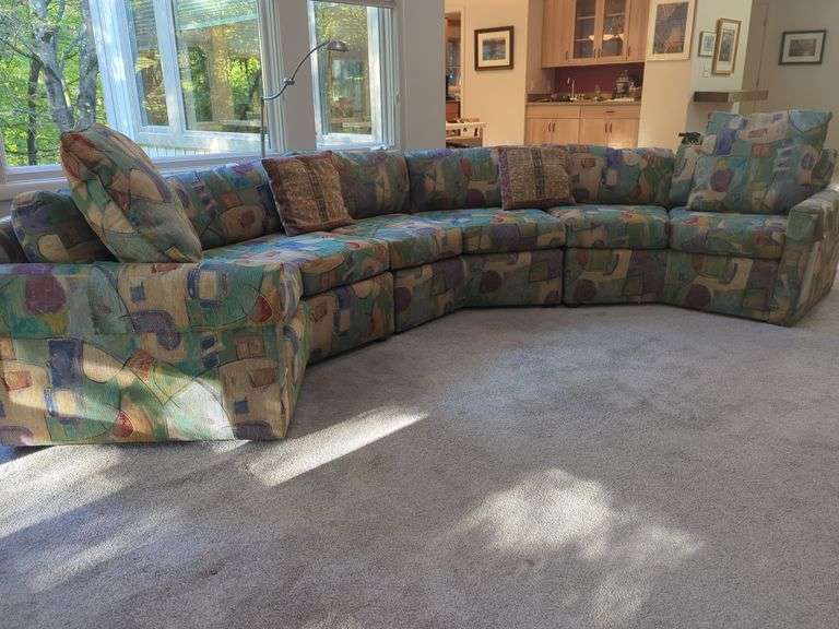 LOT 100 - Custom geometric sofa, 12 ft with matching throws.