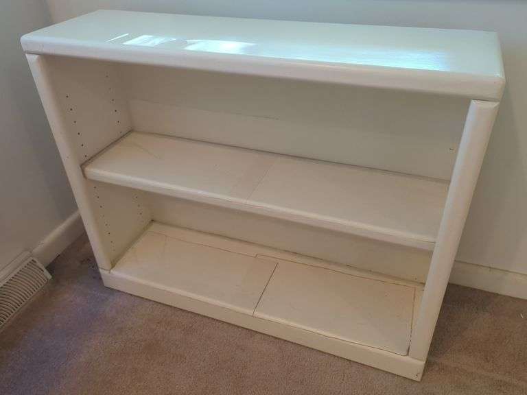 LOT 106 - Pair of white wood adjustable bookshelves. Measures 36 x 10 x 30. X2