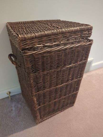 LOT 108 - Wicker 2 handle laundry basket with lid