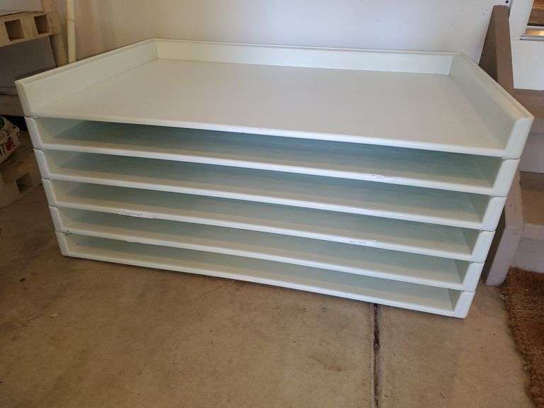 LOT 201 - (6) stackable nesting storage trays for 24-in by 36-in flat art paper, canvas, etc. Originally $40 each. Can be stacked on table or floor. No hardware needed. By the piece X6