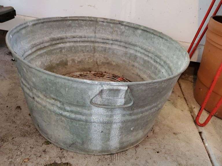 LOT 211 - 22-in round galvanized tub. Bottom is still solid.