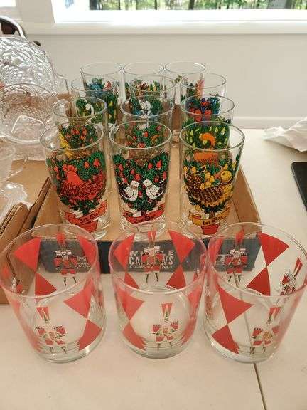LOT 187 - (1950's) 12 Days of Christmas glasses (complete set looks new), 3 nutcracker double old fashioned classes.