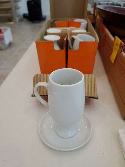 LOT 190 - Porcelain Diablo footed demitasse espresso set of six with saucers. Includes original box.