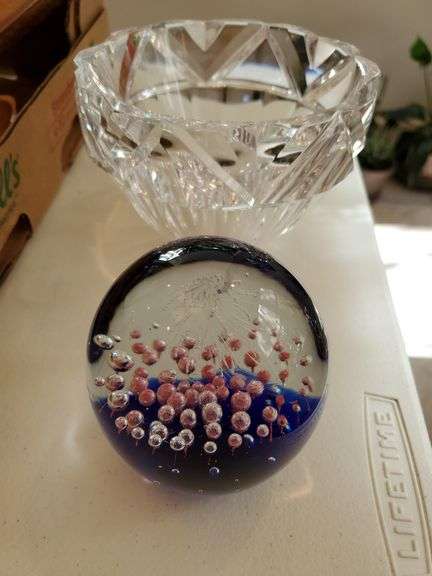 LOT 192 - Signed lead crystal bowl, decorative glass paperweight.