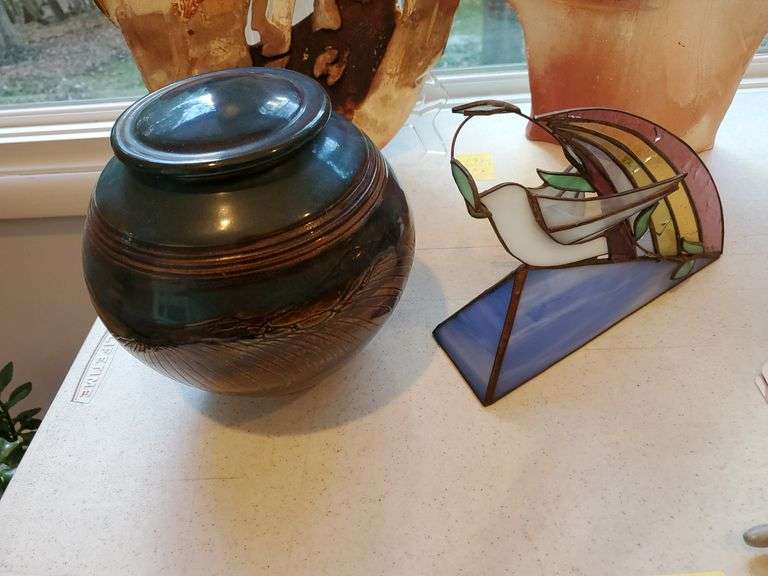 LOT 193B - Covered vase by artist Boyce and Peace Dove by Jane Stouffer.