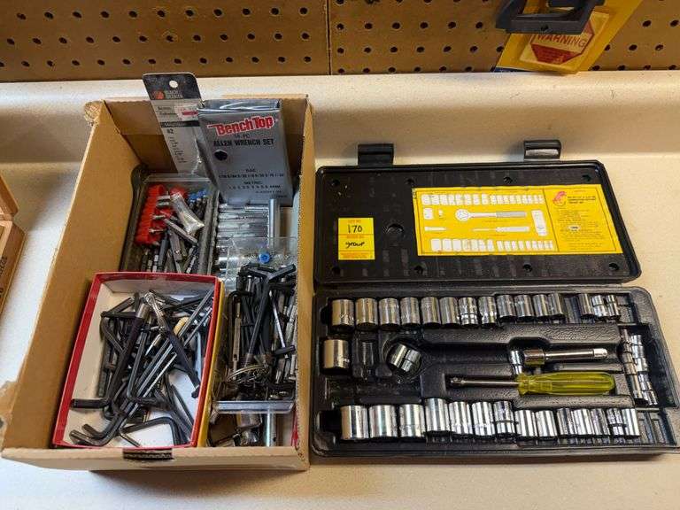 LOT 170 - 40pc Combination Socket Set with 1/4” and 3/8” Drive, missing ratchet, and assorted hex keys