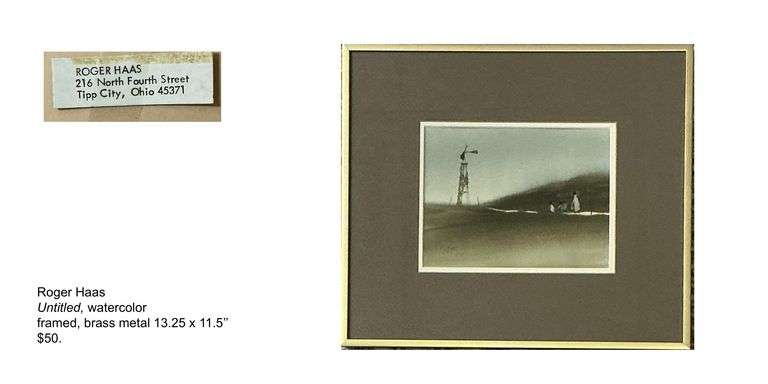 LOT 31 - Roger Haas, untitled, watercolor, brass metal frame, 13.25 x 11.5, originally priced at $50