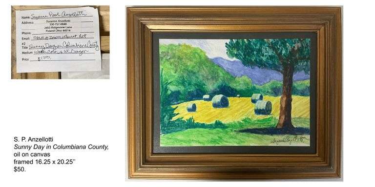LOT 34 - S. P. Anzellotti sunny day in columbiana county. Oil on canvas, gold framed, 16.25 x 20.25, originally priced at $50