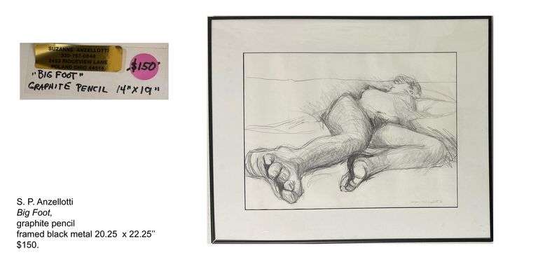 LOT 39 - S. P. Anzellotti, Bigfoot, graphite pencil, black metal frame, 20.25 x22.25. originally priced at $150
