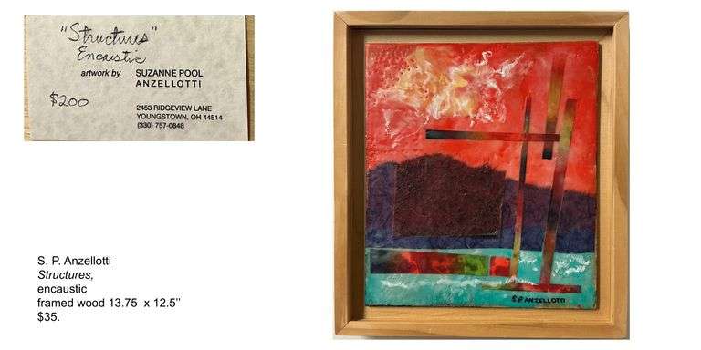 LOT 42 - S. P. Anzellotti, structures, encaustic, wood frame, 13.75 x 12.5, originally priced at $35
