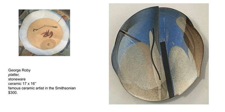 LOT 46 - George Roby platter, stoneware ceramic, 17x16, famous ceramic artist in the Smithsonian. Originally priced at $300