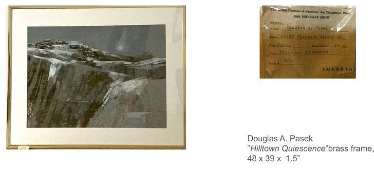 LOT 47 - Douglas A Pasek hilltown quiscense, brass frame, 48 x39x 1.5. originally priced at $200