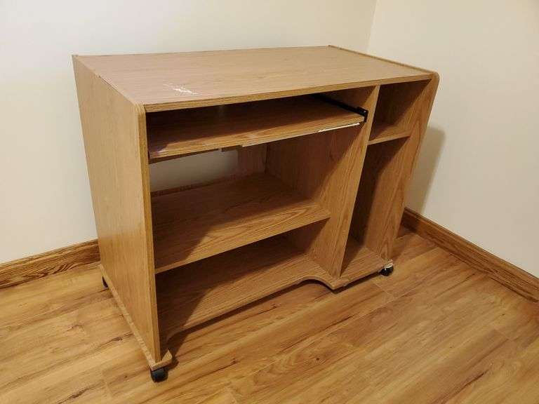 LOT 33 - Sauder style storage unit on casters measures 37 in W X 19 in D X 30 in H.
