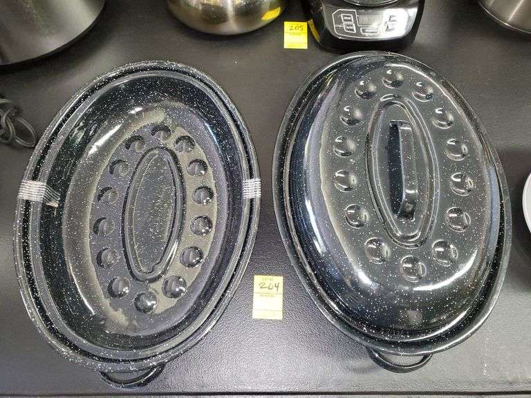 LOT 204 - (2) 10 lb capacity roaster pans. Look new. Garage