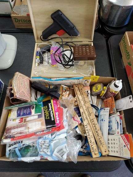 LOT 226 - Crafting supplies including glue guns, glue sticks, sewing accessories and more. Garage