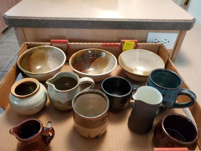 LOT 261 - Stoneware bowls, mugs, sugar bowl, creamers. Kitchen
