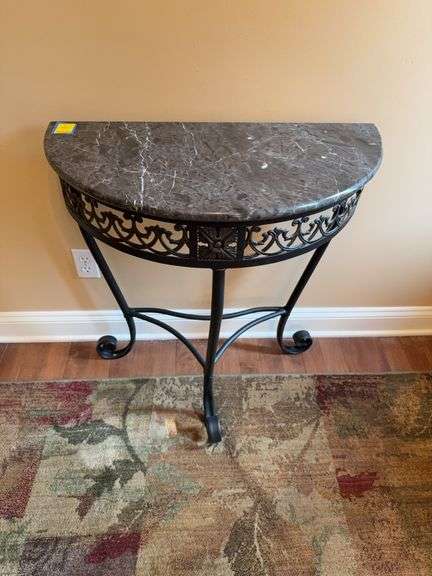LOT 7 - Marble Top Crescent Side Table with Metal Frame 30”W x 15”D 30”H