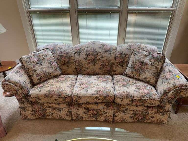 LOT 18 - Schnadig Floral Print Sofa with Matching Accent Pillows measures 90”W