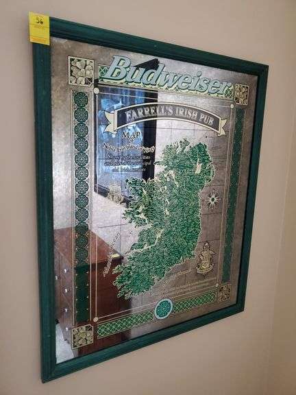 LOT 56 - Budweiser Farrell's Irish pub decorative mirror measures 26 in W X 31 in H. Back office