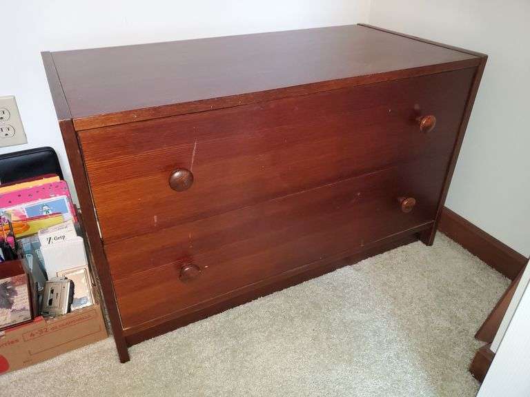 LOT 65 - Wood double drawers measure 32 in w x 16 in dx 19 in H. Back office