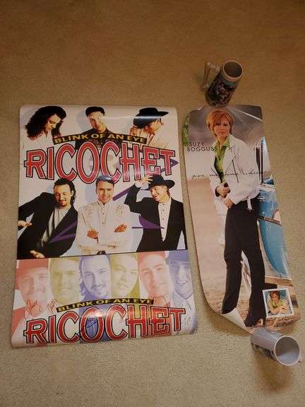 LOT 68 - 24-in x 36-in country group, ricochet autographed poster, Suzy Bogguss autographed poster measuring 14-in W 36 in H. Back office