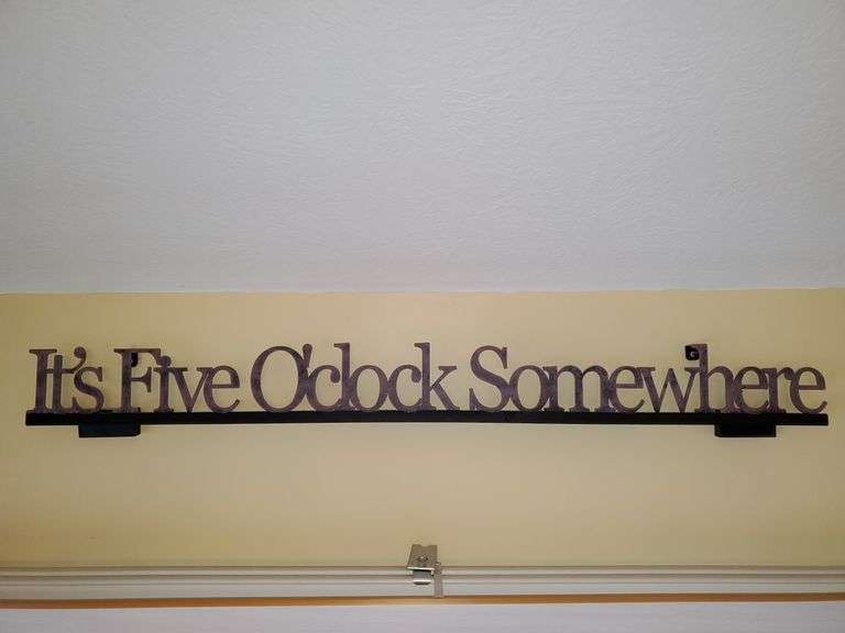 LOT 50 - 34-in wide metal wall sign, it's 5:00 somewhere. Sunroom.