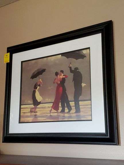 LOT 88 - Framed print of the painting "The Singing Butler" by Scottish artist Jack Vettriano. Measures 18 in X 23 in. Master bath.